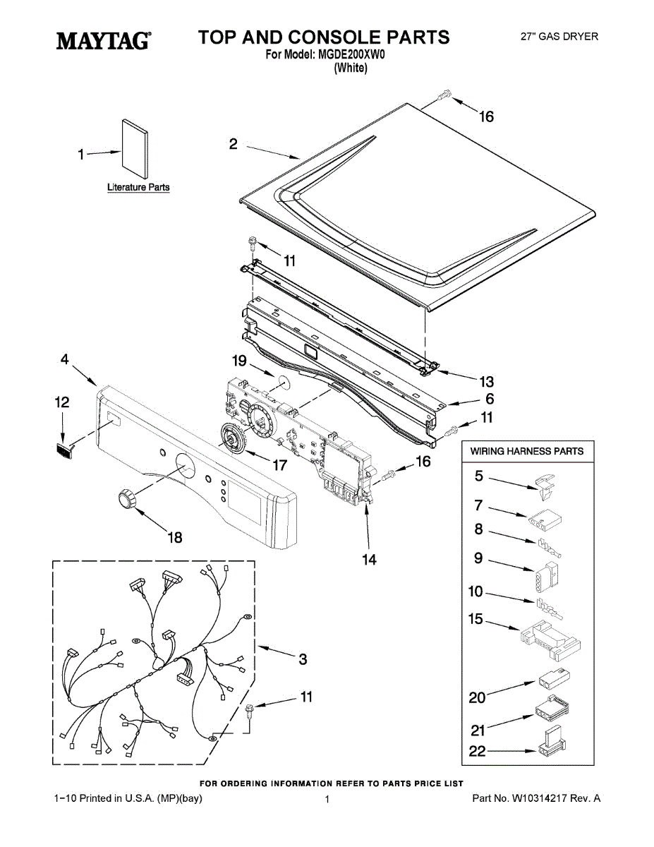 White dryer top panel that covers the drum and internal components. Replace if cracked, damaged, rusty, or worn from heavy use or chemical spills.