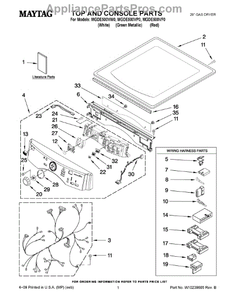 Parts for Maytag MGDE500VP0: 01 - Top And Console Parts