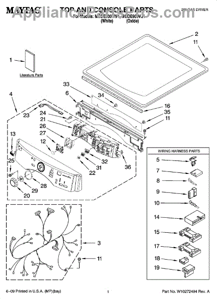 This harness clip secures appliance wiring to the cabinet or components to prevent rubbing, pinching, and interference with moving parts. It keeps wiring routed neatly for reliable operation and reduced risk of abrasion-related failures. What it does:
