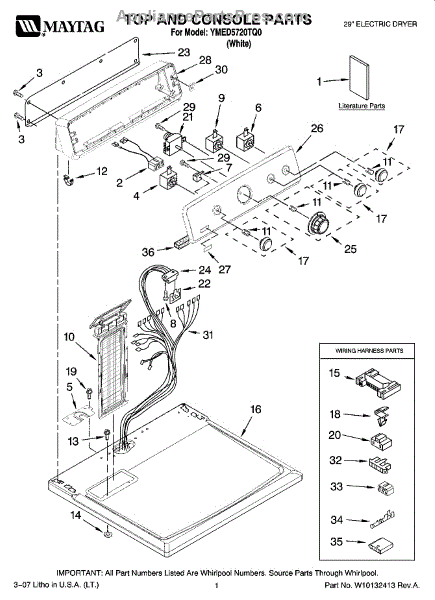 The Dryer Timer is an OEM part for Whirlpool dryers. It controls the drying cycles by regulating the duration and sequence of operations, ensuring that clothes are dried properly according to the selected settings.