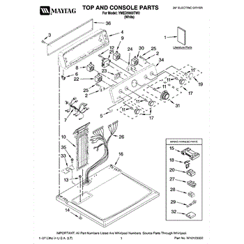 The Console Clip is an OEM part compatible with Whirlpool dryers. This clip secures the control console assembly to the top panel, ensuring it is firmly mounted during operation. Properly functioning clips are necessary to maintain the correct alignment of controls and prevent detachment.