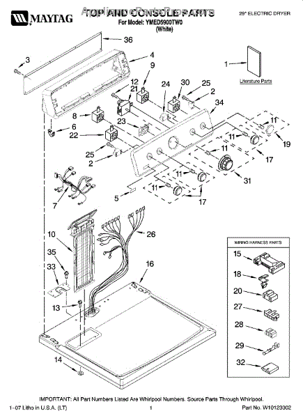 This harness clip secures appliance wiring to the cabinet or components to prevent rubbing, pinching, and interference with moving parts. It keeps wiring routed neatly for reliable operation and reduced risk of abrasion-related failures. What it does: