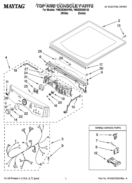 Parts for Maytag YMEDE900VW0: 01 - Top And Console Parts