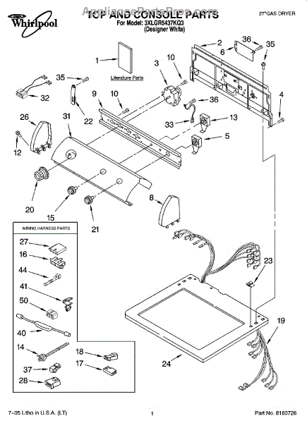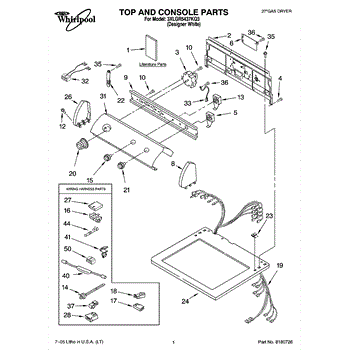 Parts for Whirlpool 3XLGR5437KQ3: 01 - Top And Console Parts