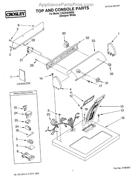The Dryer Repair Kit is an OEM replacement part for Whirlpool 29-inch large capacity dryer models. It is a kit designed to provide various essential components and hardware needed for common dryer repairs or maintenance tasks.