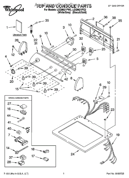 Parts for Whirlpool LGQ8621PW2: 01 - Top And Console Parts