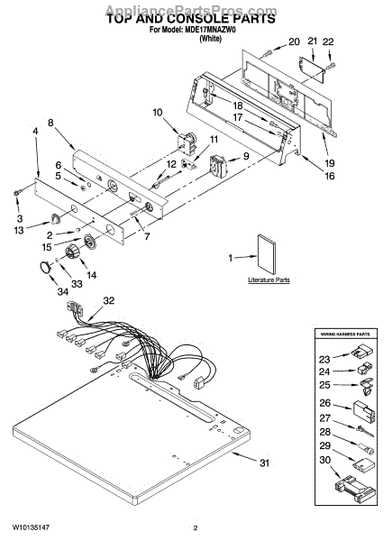 The push-to-start switch activates the dryer motor when you press the Start button. Replacing it restores dependable starting with one press.