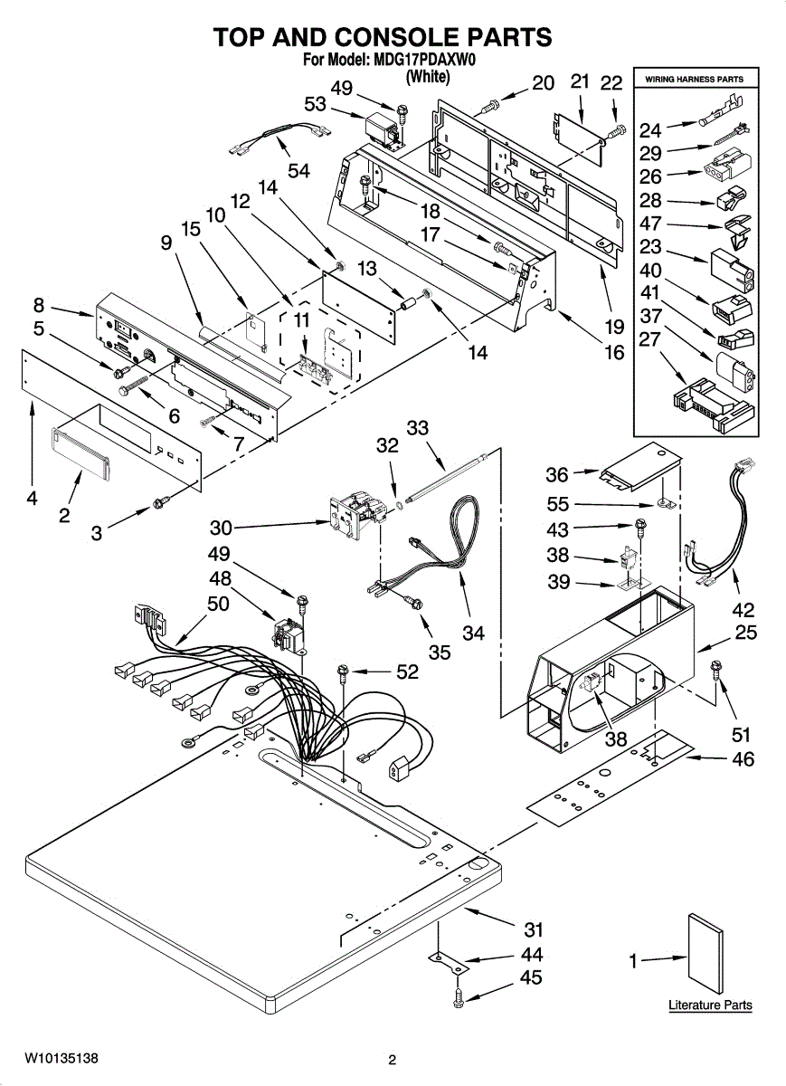 Wire harness for washers. Connects electrical components to control board. Replace if wires are frayed, damaged, or connections are loose or corroded.