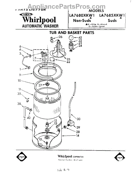 Parts for Whirlpool LA7685XKW1: 01 - Tub And Basket Parts