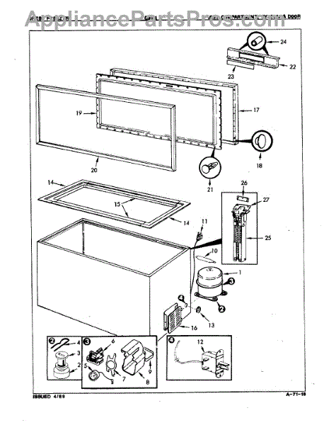 This factory screw secures appliance components to their mounting points. Replace missing, worn, or stripped hardware to restore a tight fit, proper alignment, and quieter operation across the affected assembly.