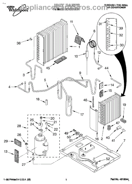 Parts for Whirlpool 8CACM10DD1: 01 - Unit, Literature Parts