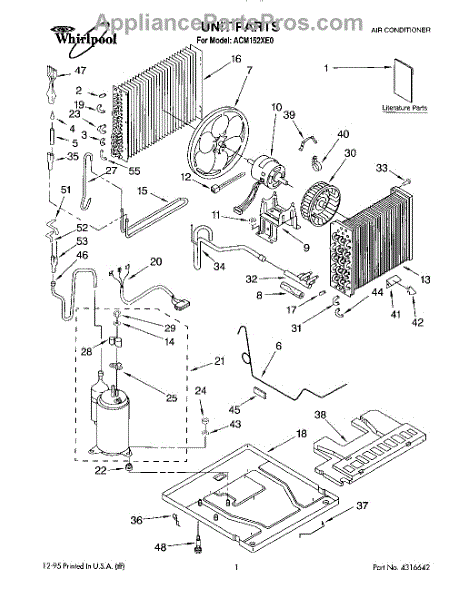 Parts for Whirlpool ACM152XE0: 01 - Unit, Literature Parts