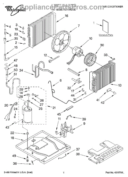 Parts for Whirlpool ACV184XG0: 01 - Unit, Literature Parts