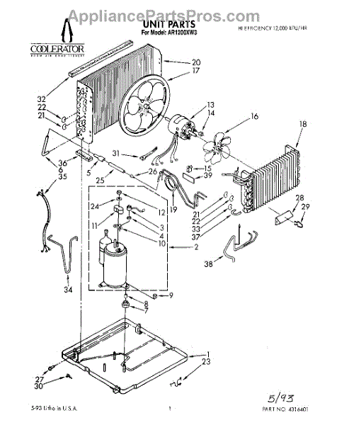 Parts for Whirlpool AR1200XW3: 01 - Unit, Literature Parts