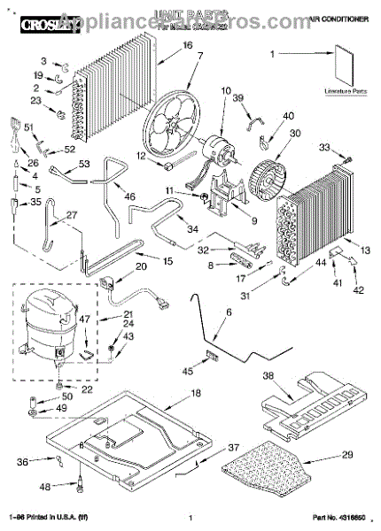 Parts for Whirlpool CA25WC52: 01 - Unit, Literature Parts