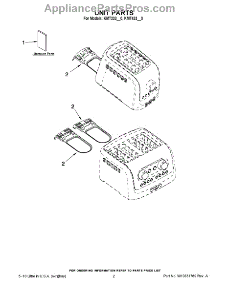 Parts for Kitchenaid KMT233ME0: 01 - Unit Parts