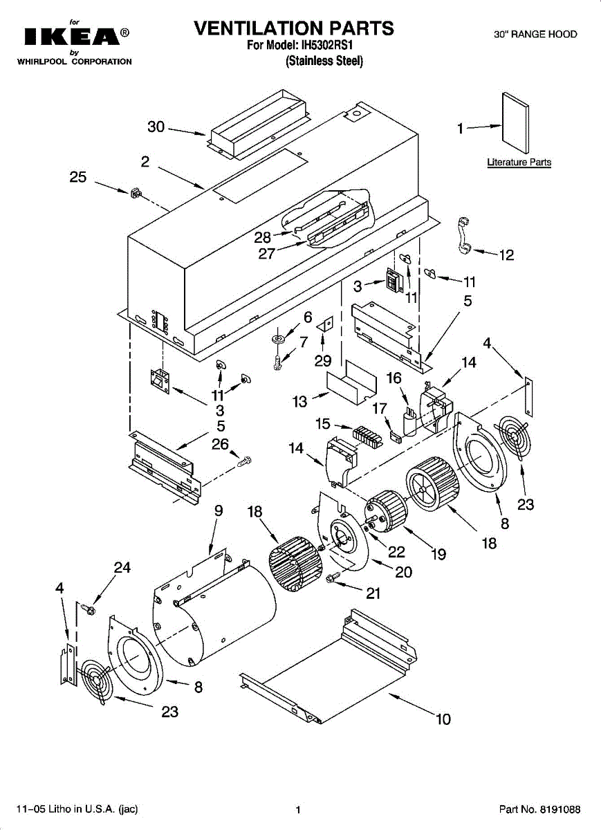 Parts for Whirlpool IH5302RS1: 01 - Ventilation Parts