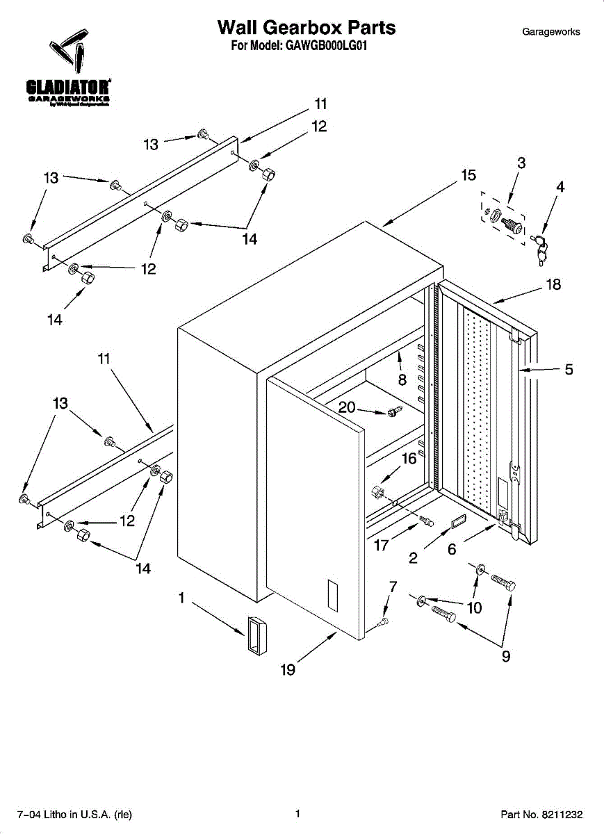 Parts for Whirlpool GAWGB000LG01: 01 - Wall Gearbox Parts