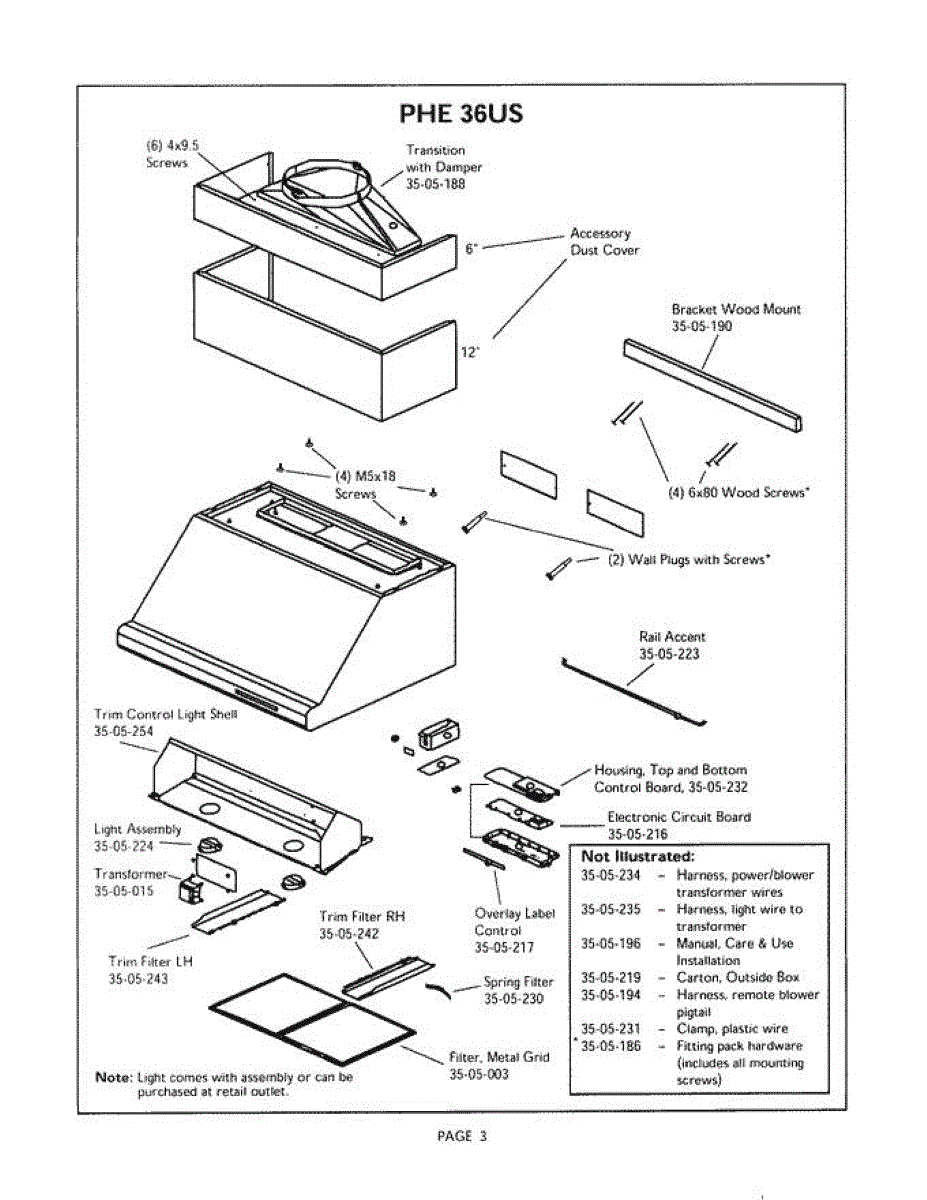 Parts for Thermador PHE36US: 01 - Wall Hood Parts
