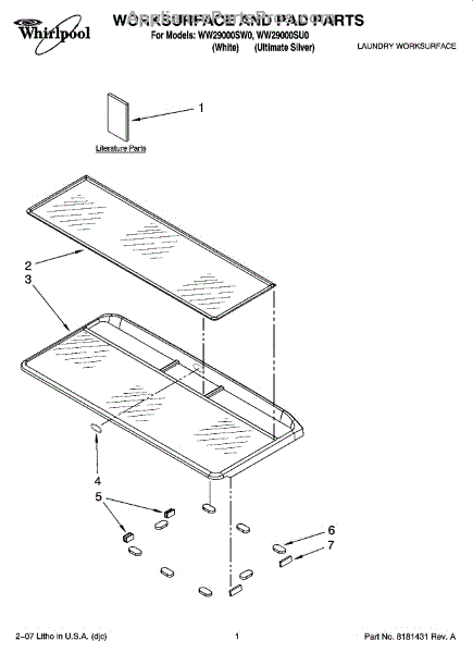 Parts for Whirlpool WW29000SW0: 01 - Worksurface And Pad Parts