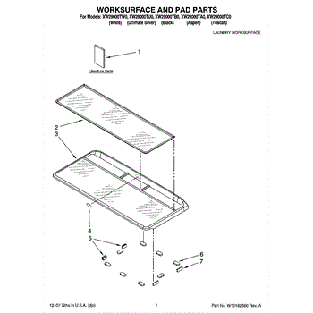 Parts for Whirlpool XW29000TC0: 01 - Worksurface And Pad Parts