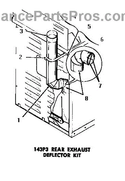 Parts for Amana DG1030: 02 - 143P3 Rear Exhaust Deflector Kit Parts