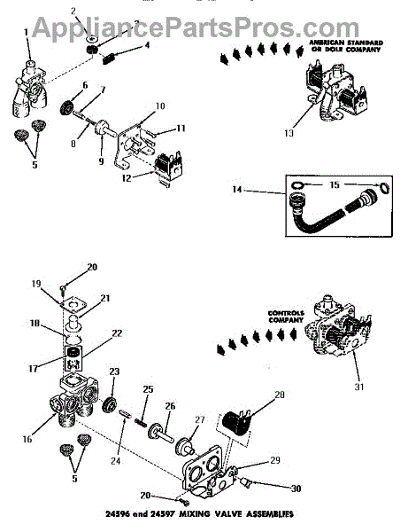 Parts for Amana DA6101: 02 - 24596 & 24597 Mixing Valve Assemblies Parts