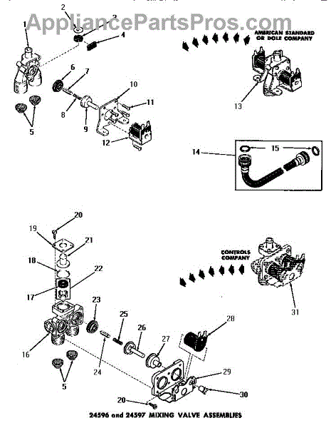 Parts for Amana DA6191: 02 - 24596 & 24597 Mixing Valve Assemblies Parts