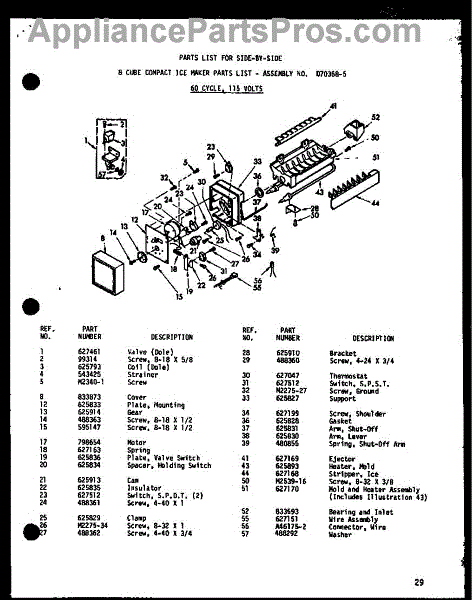• Works with the ice maker's motor/gear assembly to advance cubes into the bin.