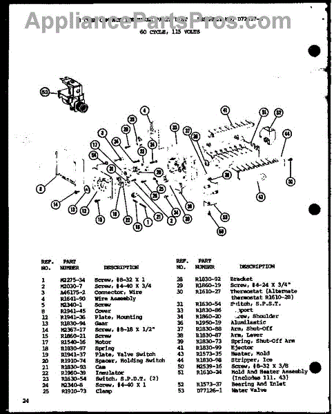 Parts for Amana SR22GL / P7745501W L: 02 - 8 Cube Compact Ice Maker Parts