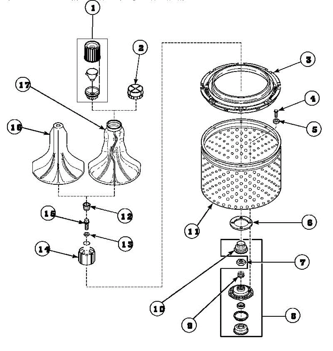 Parts for Amana CW9203W3 / PCW9203W3 B: 02 - Agitator / Drive Bell / Seal Kit / Tub & Hub Parts