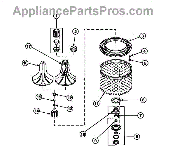 Parts for Amana LW2501W2 / PLW2501W2 B: 02 - Agitator / Drive Bell / Seal Kit / Tub & Hub Parts