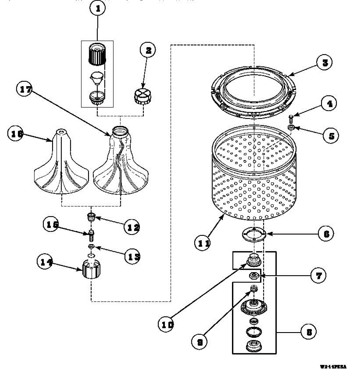 Parts for Amana LW9203W2 / PLW9203W2A: 02 - Agitator / Drive Bell / Seal Kit / Tub & Hub Parts