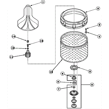 Parts for Amana LWS16AW / PLWS16AW: 02 - Agitator / Drive Bell / Seal Kit / Tub & Hub Parts