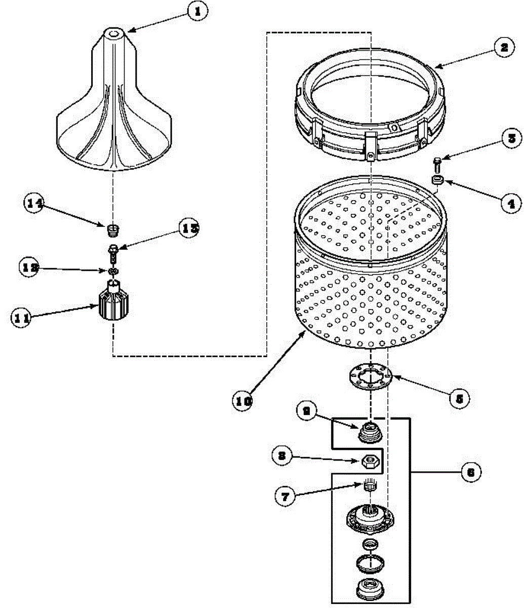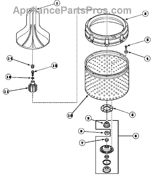 Parts for Amana LWS17AW / PLWS17AW: 02 - Agitator / Drive Bell / Seal Kit / Tub & Hub Parts