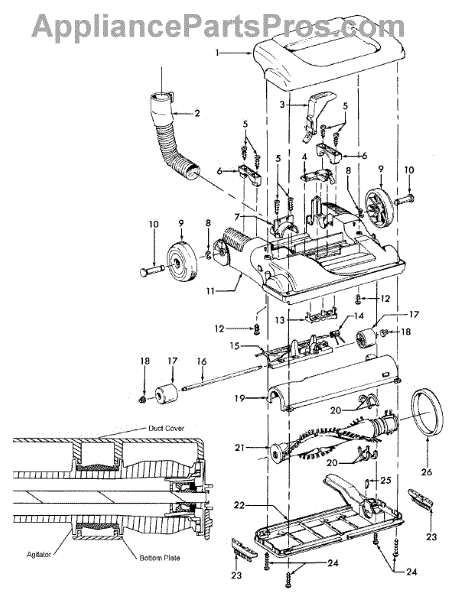Parts for Hoover C1701900: 02 - Agitator, Mainbody, Hood Parts