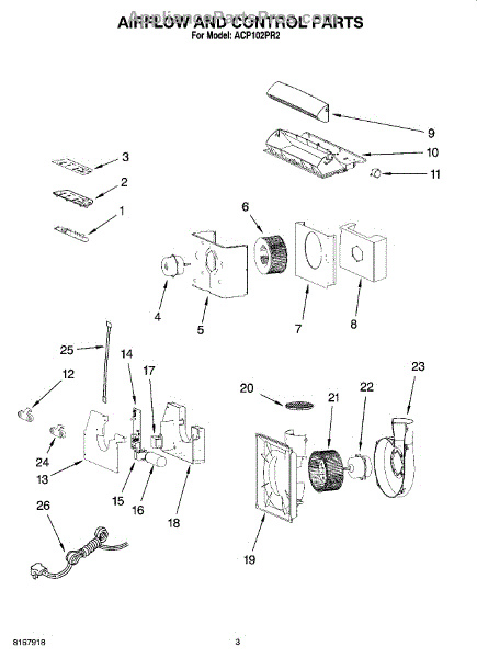 Parts for Whirlpool ACP102PR2: 02 - Air Flow And Control Parts