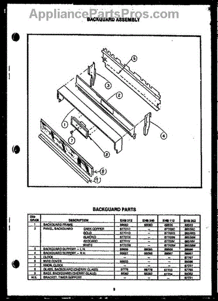 Parts for Amana EHB352: 02 - Backguard Assy Parts