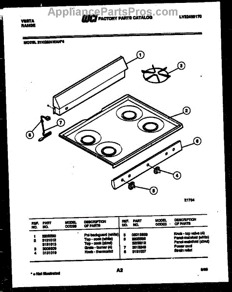 Parts for Frigidaire 21KGMAWAN4-23: 02 - Backguard And Cooktop Parts
