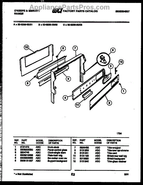 Parts for Frigidaire 30-6239-23-01: 02 - Backguard Parts