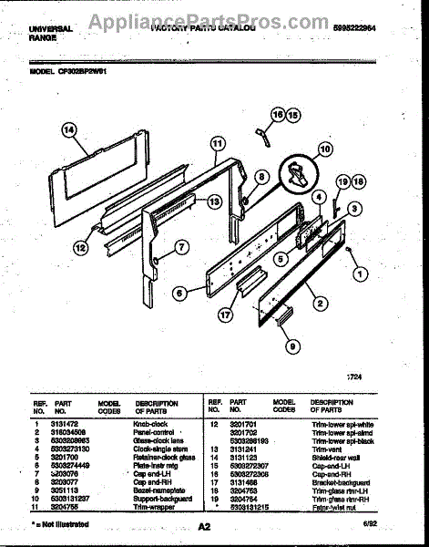 Parts for Frigidaire CP302BP2WJ01: 02 - Backguard Parts