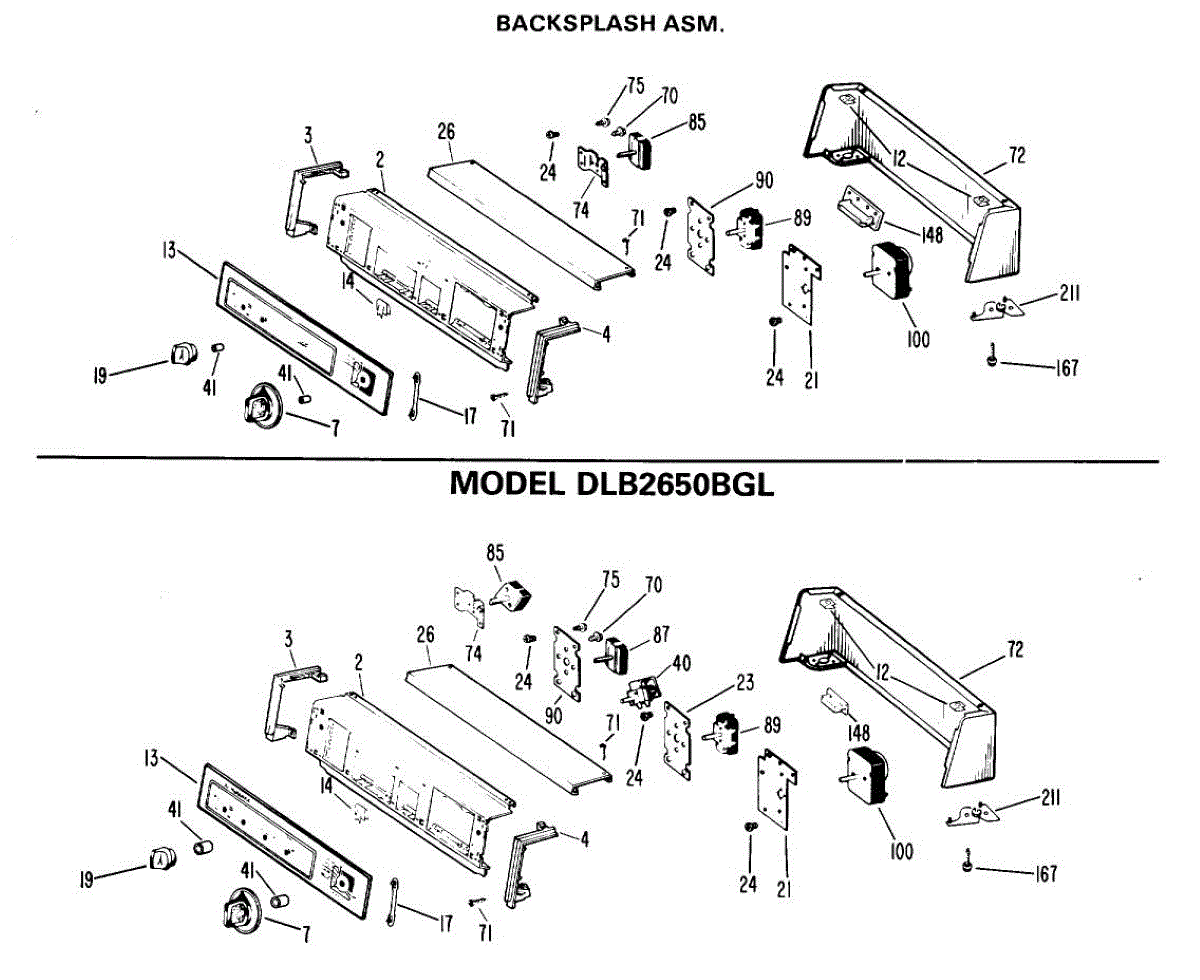 Parts for Ge DLB1550BEL: 02 - Backsplash Asm. Parts