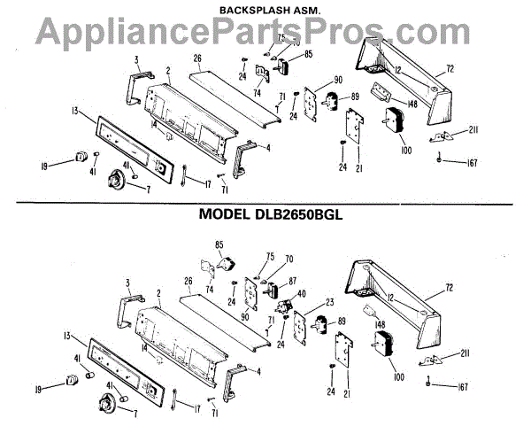 Parts for Ge DLB2450BEL: 02 - Backsplash Asm. Parts