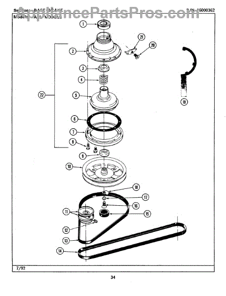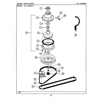 The Brake Assembly is an OEM part for Whirlpool washing machines. This component plays a crucial role in stopping the washer drum from spinning at the end of the spin cycle. It ensures that the drum comes to a complete stop, allowing for safe unloading of laundry and preventing potential damage to the machine. Brake removal tool: TJ038315