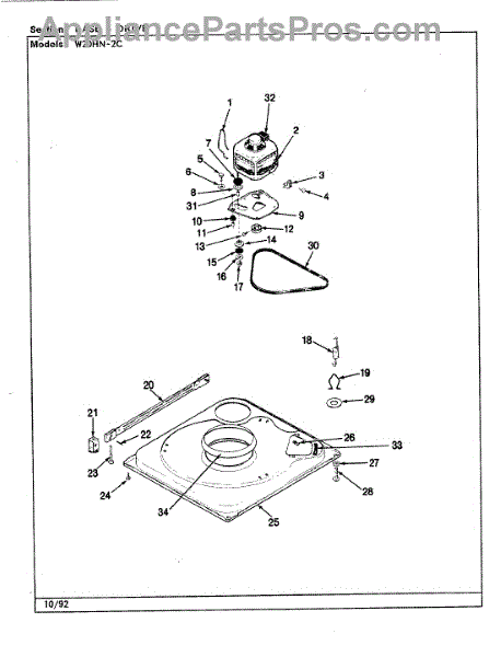 Drive belt transmits motor power to drum for wash and spin cycles. Replace if washer won't spin, makes noise, or belt shows wear. Confirm fit by model.