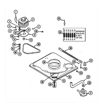 The Motor Spring is an OEM replacement part for Whirlpool top-loading washing machines. This spring applies proper tension to the agitator assembly during wash cycles.