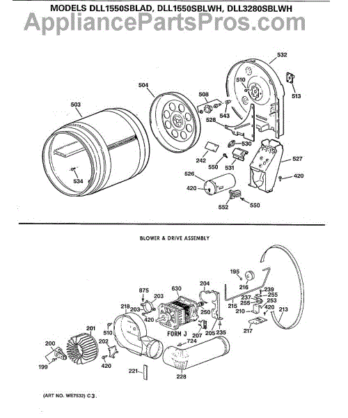 The Blower Wheel is an OEM replacement part for GE dryers. It has a role in the air circulation within the dryer, aiding in the even and efficient drying of clothes. The blower wheel, connected to the motor, helps in expelling the moist air out of the dryer through the exhaust vent during the drying cycle. Causes of a malfunctioning blower wheel are typically wear and tear from regular use, the accumulation of lint or debris, or damage to the wheel’s fins or central hub, which can impact its rotation and air circulation capability. Symptoms of a bad Blower Wheel include: