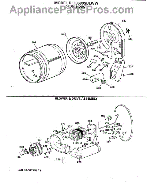 Parts for Ge DLL3680SBLWW: 02 - Blower & Drive Assembly Parts