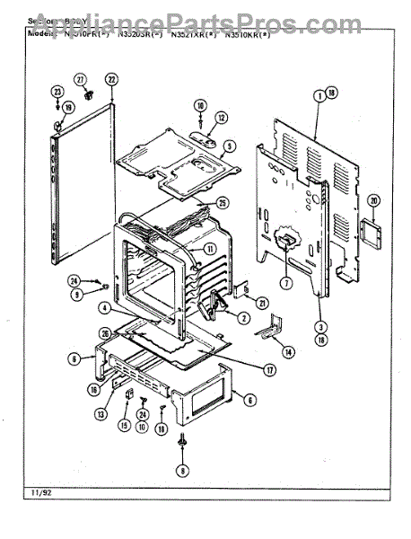 Front broiler drawer support.