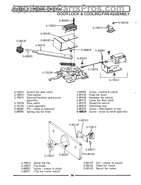This factory screw secures appliance components to their mounting points. Replace missing, worn, or stripped hardware to restore a tight fit, proper alignment, and quieter operation across the affected assembly.
